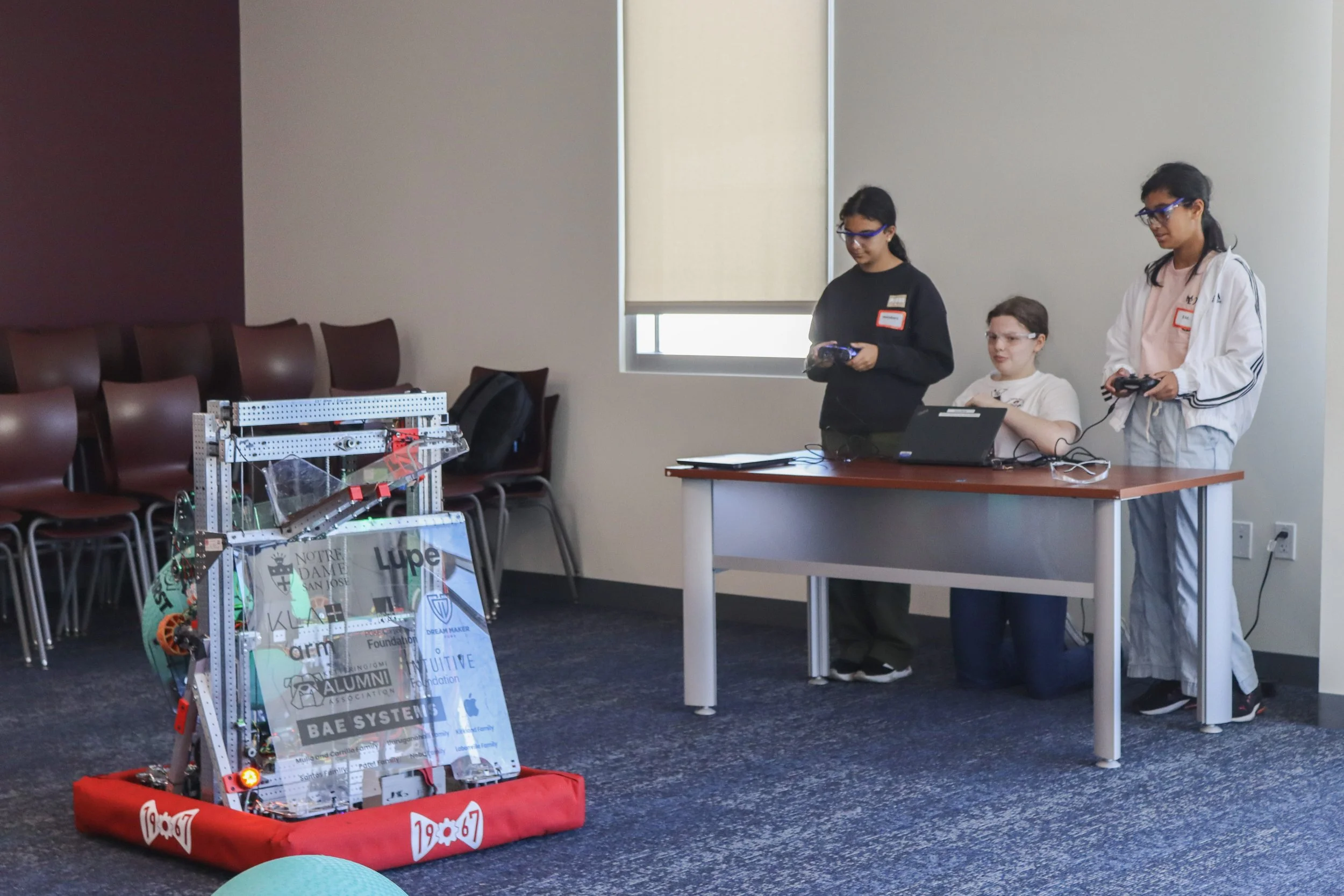 Beginning in the summer of 2014, our team demonstrated our robot at Intel’s Bring Your Kid to Work Day. When kids came to see the team, we taught them the basics of driving our robot, how to operate some of its mechanisms, and to understand how it works.